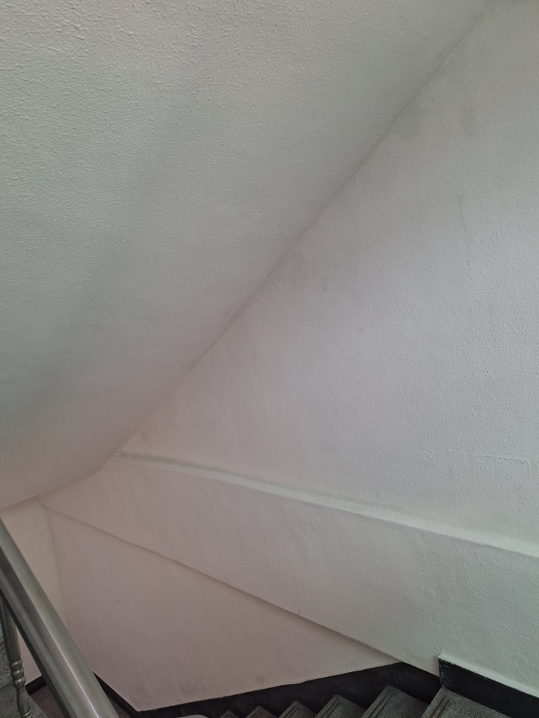 도장 작업이 완료된 후 복도는 확연히 달라진 모습을 보여주었습니다. 기존의 칙칙하고 오염된 느낌은 사라지고, 밝고 깨끗한 분위기로 변화했습니다. 특히 수성페인트 특유의 자연스러운 색감 덕분에 공간이 더 넓어 보이는 효과도 느껴졌습니다.