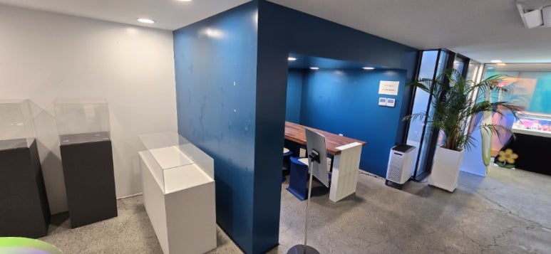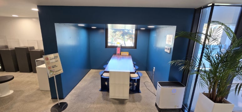 특히 공간박스 내부는 체험 및 교육 공간으로 활용되는 구조인데, 긴 테이블과 좌석 배치가 어우러지면서 하나의 완성된 공간으로 느껴졌습니다. 이런 구조에서는 색감과 마감이 매우 중요한데, 청아페인트 대구수성구 도색작업은 벽면과 천장, 모서리까지 모두 균일하게 마감되어 높은 완성도를 보여주었습니다. 사진에서도 확인할 수 있듯이 광택이 자연스럽게 살아있고, 표면이 매끄럽게 정리되어 있어 전문적인 시공이라는 것이 느껴집니다.
